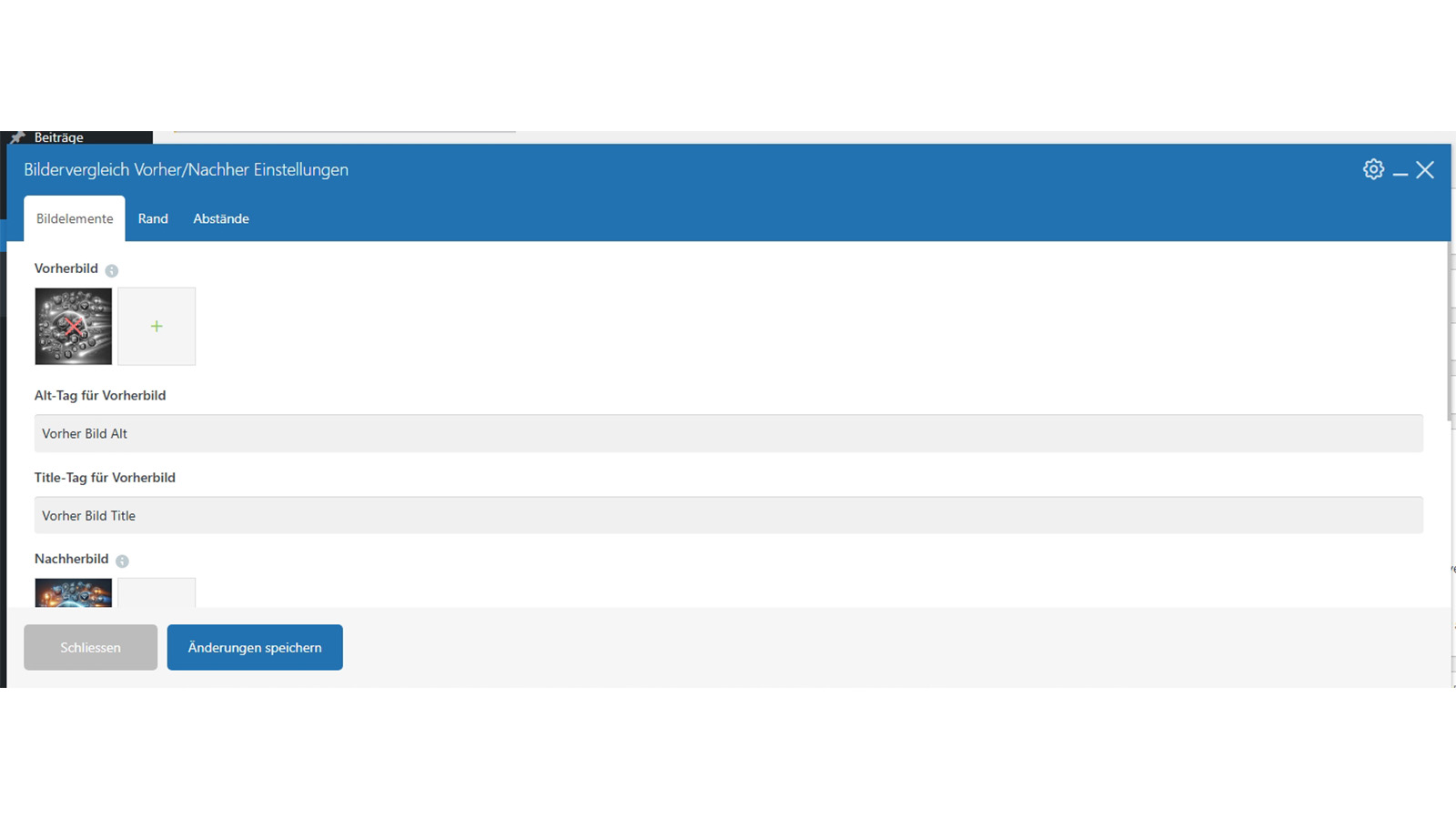 Der Vorher-Nachher Bildvergleich wurde als eigenständiges Addon für den WPBakery Page Builder entwickelt, um Bildvergleiche auf professionelle und zugleich intuitive Weise zu präsentieren. Das Modul fügt sich nahtlos in die bestehende WPBakery-Oberfläche ein und kann per Drag & Drop auf jeder Seite oder in jedem Abschnitt platziert werden.